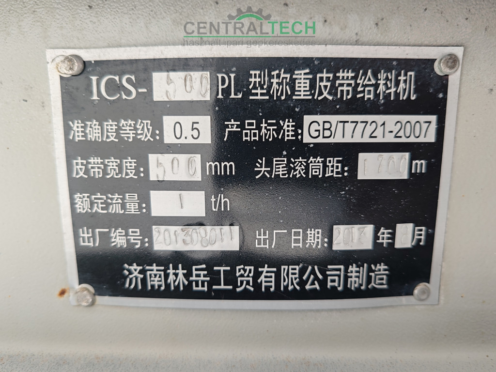 ICS-500PL típusú szalagos adagoló, 2x0,5m, 0,37 kW