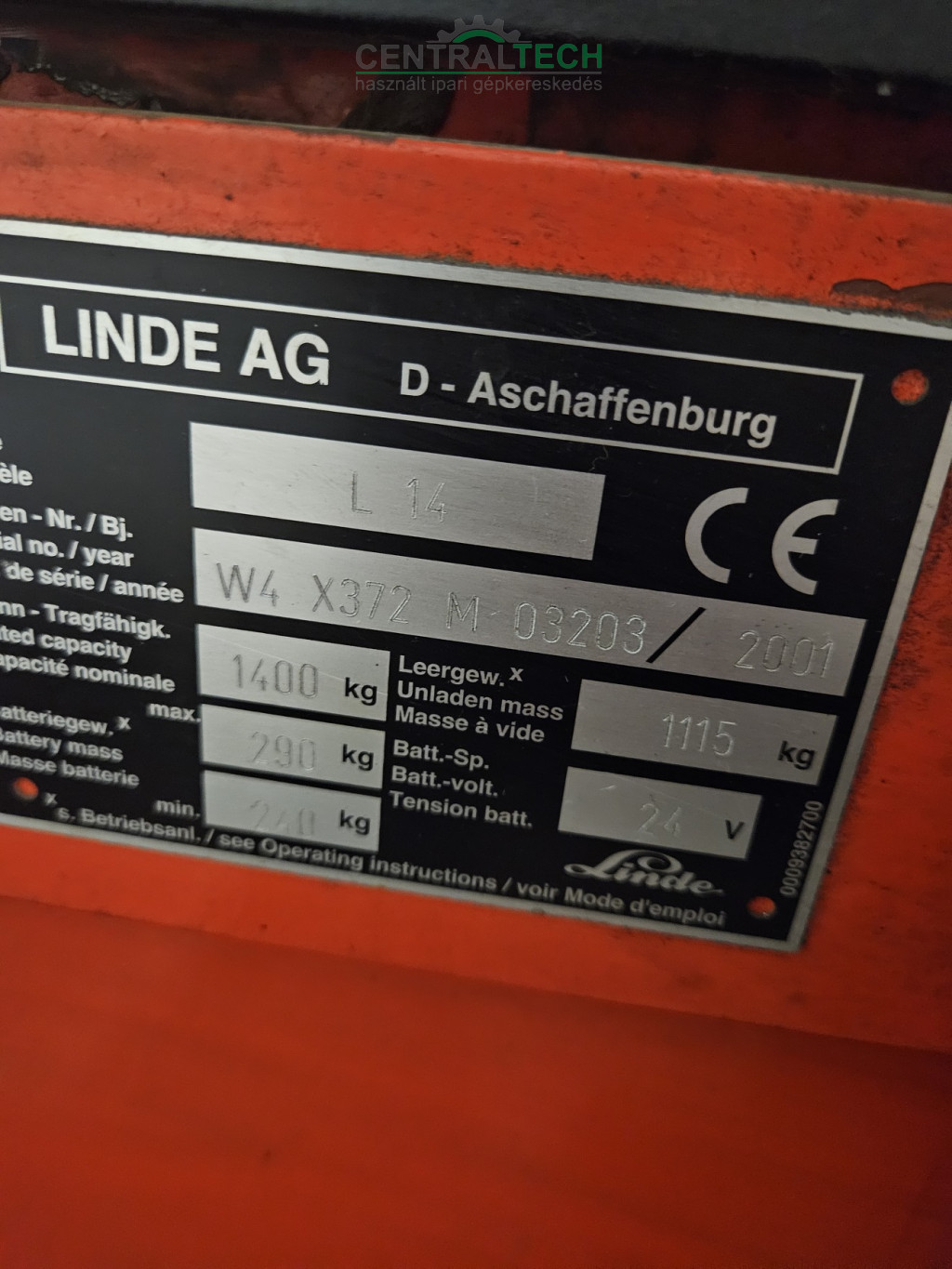 For sale in excellent condition 1.4 ton LINDE L14 pedestrian forklift. 4.7m lifting capacity