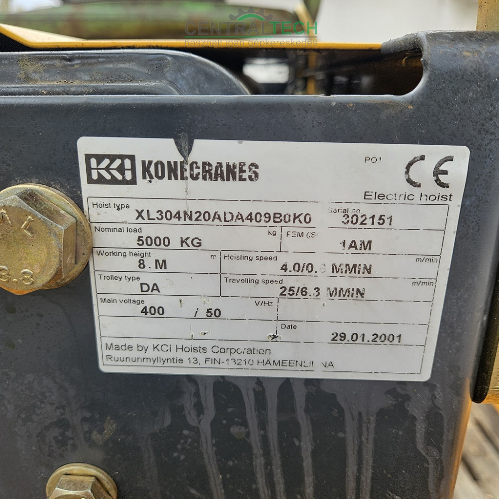 Overhead crane wire rope hoist Konecranes XL300 5000kg 8m