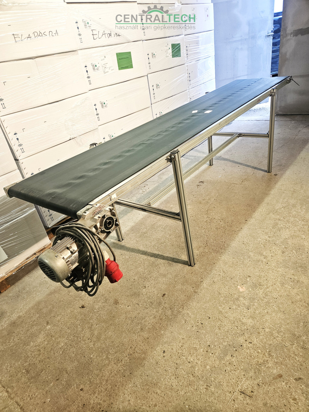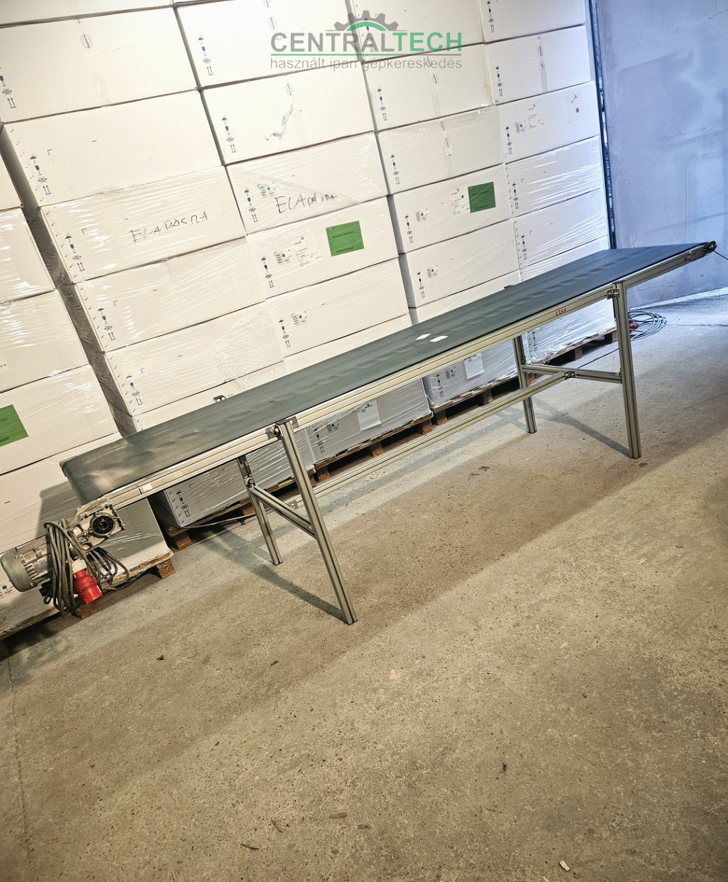 alu vázas szállítószalag 3100x600mmm 6,5m/perc válogatószalag.